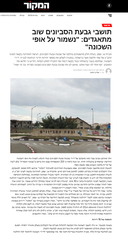 כתבה בעניין ייצוג משרדנו את תושבי גבעת הסביונים בקרית מלאכי.