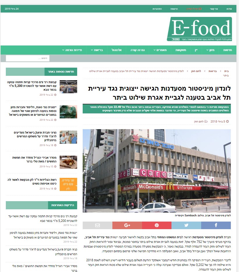 כתבה שפורסמה על תביעה מנהלית ייצוגית שהגיש המשרד בגין אגרת שילוט כנגד עירית תל אביב.